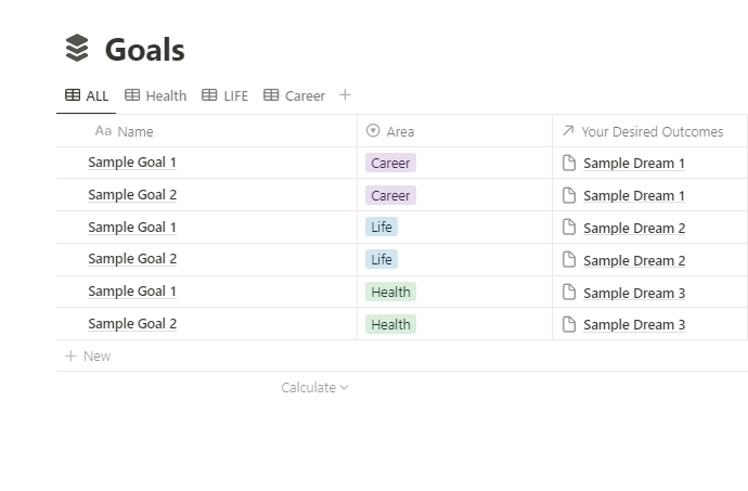 Elevate your goal-setting game with our intuitive Notion template. Define, plan, and track your goals with ease, staying focused and motivated every step of the way. Turn your aspirations into reality, one goal at a time.
